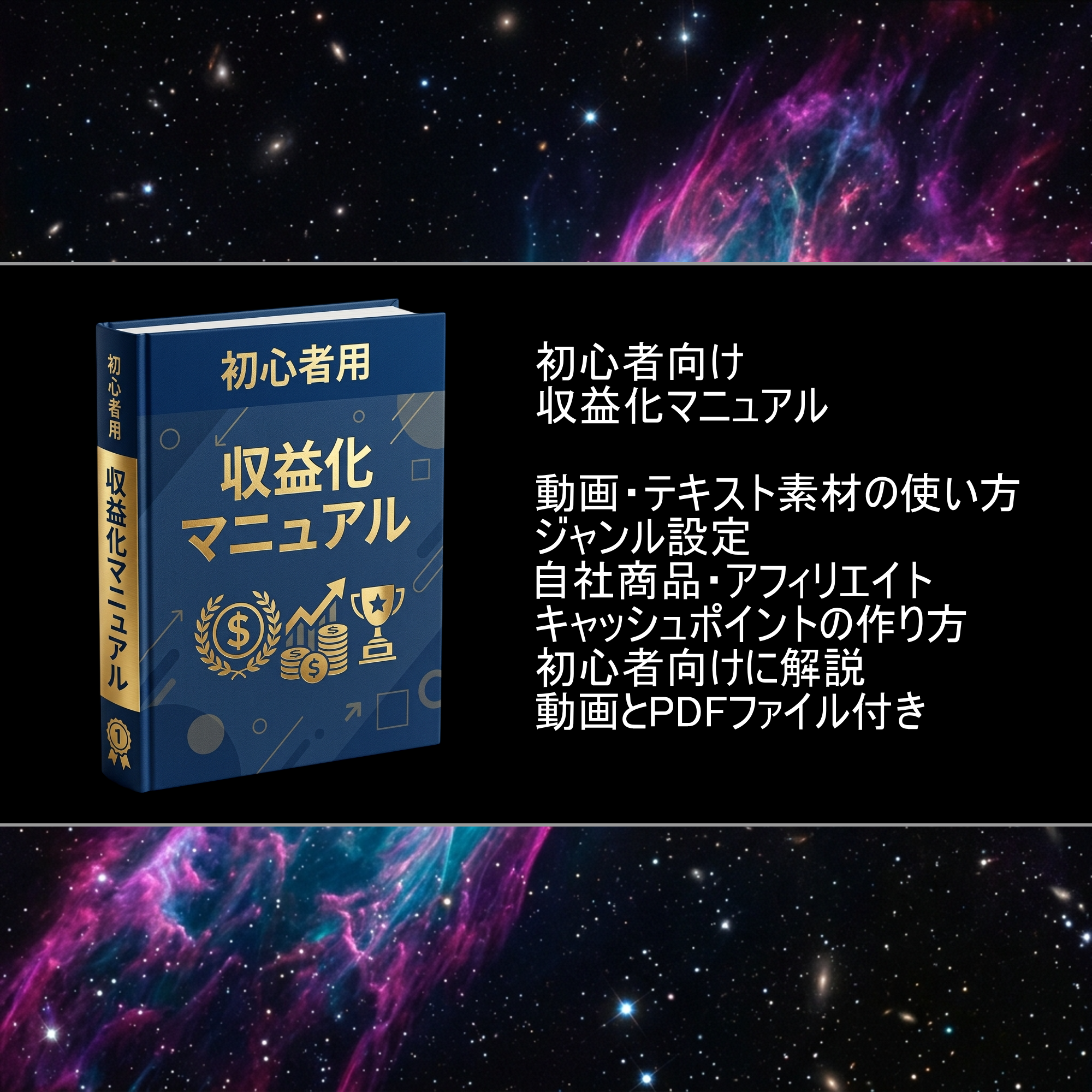 収益化の基本マニュアル動画4つ (約45分)、PDF2つ(合計5ページ)